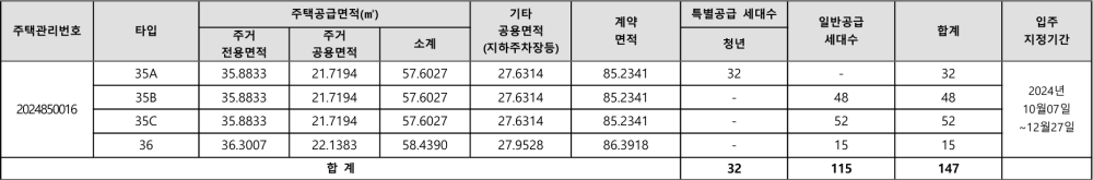 - 35㎡ 132세대(특별공급 32세대, 일반공급 100세대)